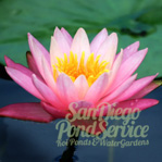 | AQUATIC PLANTS: Bring your pond to life with thriving, beautiful, exotic aquatic plants! San Diego Pond Service specializes in aquatic pond plant mgmt. Aquatic pond plants are essential to maintain optimum water balance. They provide an excellent source of oxygen to the pond, give coverage and shelter to your koi, can be used to redirect water flow, fight algae, and are a necessary component in the nitrogen cycle. If you do not have an ultraviolet sterilizer added to your filter system, we strongly recommend using a variety of aquatic plants in your pond to help prevent single cell (green water) algae blooms. Pond plants such as lilies, lotus, bog plants, and various types of floating plants, all look great in your pondscape. |