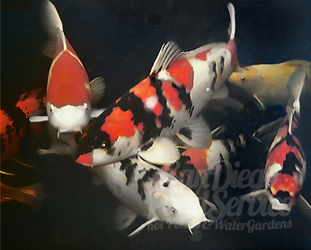 KOI RELATIONSHIPS: Your pond is a home to koi, goldfish, and mosquito fish. Even turtles can join the group without a hitch. Bass, on the other hand, are very aggressive. We love koi, so we encourage koi fish only ponds. Goldfish breed rapidly, so think twice before adding them to the pond. Koi are known as "living jewels." They have many humanistic traits. They feed together, huddle together, and they even court each other. There is a hierarchy and adoration for one another within the group. Their predators feed off these defenseless animals. Look for signs of predators such as; feathers, koi carcasses, fecal droppings, trampled aquatic plants, or skittish koi to prevent a fish extinction in ecosystem. |